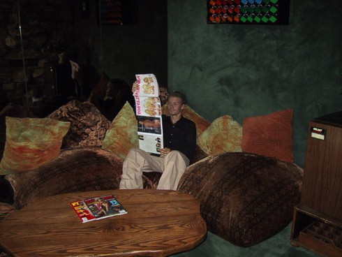 We did however explore a little deeper into the den including the fabled grotto beneath the waterfall of the poll where anybody who is anybody has probably been naked before. My buddy Titus was so inspired to try the cushions on for size and show a little nipple action. We also found the lower level exercise room that also had plenty of fluffy cushions and places for "relaxing" after that hard workout. After the stimulating reading of a couple articles in the provided literature, we headed back up to the tent where the event was to be held and enjoyed the presentation. We filled up on food and drink as well as the provided swag and soaking in the sun and the whole experience of just being there on such hallowed ground.