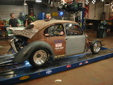 Since the parking lot run was not the best for filming or for actual testing, we all gathered together at the drag strip in Fontana for some proper runs. The cosmetics had now been done and the car looked fantastic. Im sure some additional engine tuning was done as well and the "gurus of speed" were on hand to further tweak and tune to extract the very most from the air cooled flat four. While the car failed to get into the "9's" as we had first dreamed, but the car did run strong in the 10's . I think all involved knew the car could make the grade with just a little more effort at attention to the fine details and we were all proud of the accomplishment and opportunity to be involved with the build. It was an absolute blast.