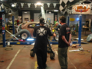 In the back part of the warehouse were several past Monster Garage builds and the show folks asked for some help with VW related decorations for the set, and I brought out a bunch from my stash. The coin op kiddie ride and VW signs and toys I hauled in made it feel a little like home. I drove my custom New Beetle one day and my chop top old Beetle another day. Jesse pulled up one morning in his "bug", a black Porsche Carrera GT. There was a lot of eye candy to take in and inspire us and the workshop itself was equipped with a dream assortment of every possible tool you could imagine and even some I never knew existed. This was an absolute gear head's dream world. But would this dream become a nightmare? Only time would tell.