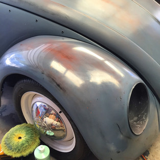 Once back at the "Carchaeology Laboratories" I started out with a good bath and then rolled it in the shop. For the rest of the day I just stared at the car from every possible angle. I looked at every little detail and then would step back and take it all in and squint a bit. By the end of the day I had my plan. With the big So Cal VW Classic / El Prado shows just 10 days away I had my target. I told my wife that it was game on and to not expect to see much of me for the next couple weeks and I just dived in full force to challenge myself and see what I could accomplish.